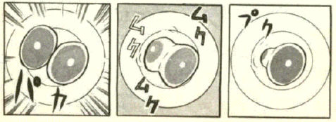 見ようによっては得体の知れない恐怖を感じる読者もいたことでしょう。私の場合なんか怖っ!!でした。擬音が怪しさを引き立てているんでしょうか。「プク」はともかく「パカ」って…変なバイオ生物が入ってそうな音だよ。