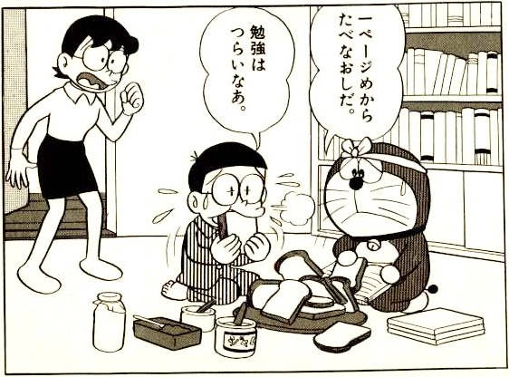 今回ののび太、明日国語と算数のテストがいっぺんにやってくるというので困ってるんですが、困りすぎです。